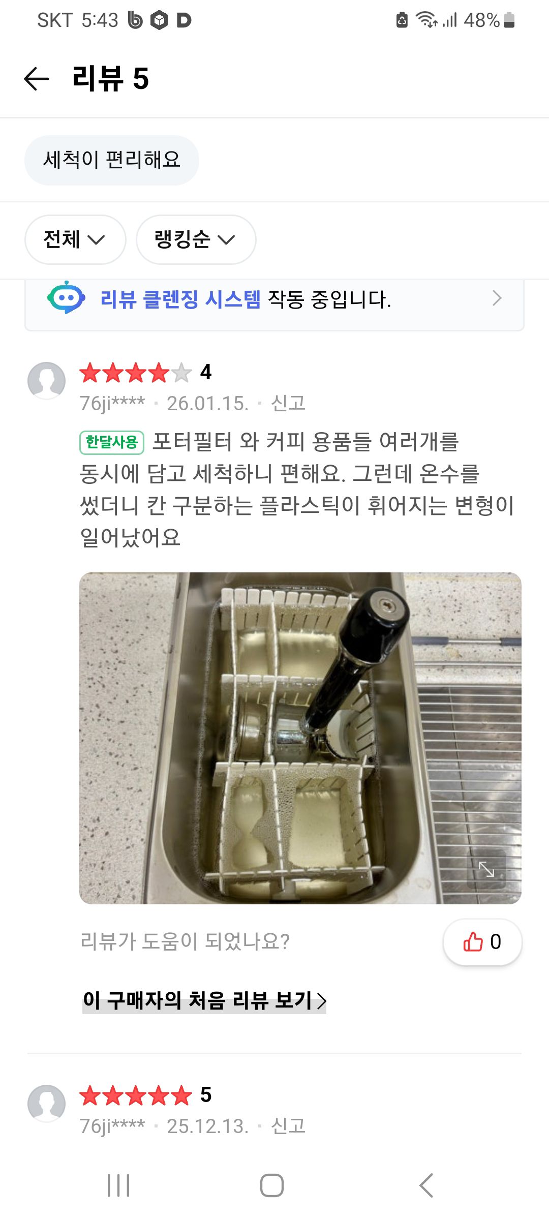 리뷰 한달사용) 동시에 담고 세척하니 편해요. 칸 분리하는 플라스틱이 휘어지는 변형. #포터필터 #샤워스크린 #스파웃 #샤워망 #디퓨저